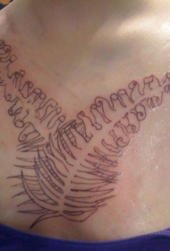 胸部黑色的翅膀与英文字母纹身图案