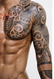 黑白波利尼西亚风格手臂和胸部纹身图案