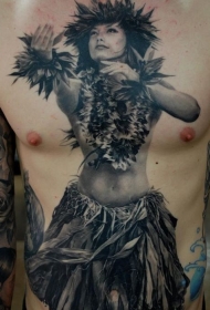 腹部写实的黑白舞蹈部落女人纹身图案
