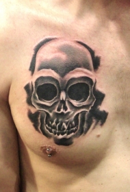 胸部黑色骷髅纹身图案