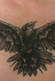 黑色乌鸦俯冲胸部纹身图案