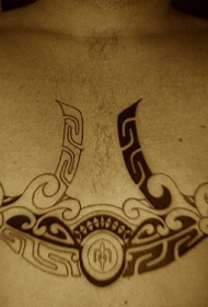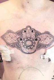 胸部法蒂玛之手和梵花线条点刺纹身图案