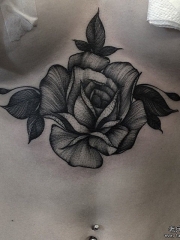 胸部欧美鹿角心脏和复杂的几何纹身图案