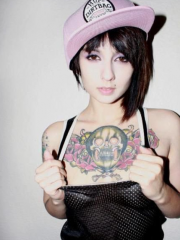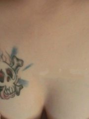 美女胸部玫瑰骷髅彩色个性纹身图案