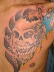 男人胸部超酷的彩绘羊头玫瑰花纹身图案