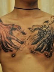 美女胸部尽情绽放的花卉与灯蝴蝶纹身