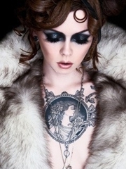女性胸骨下漂亮的装饰纹身图案来自泽利娜