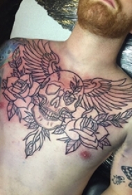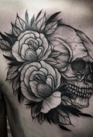 纹身胸部男 男生胸部花朵和骷髅纹身图片