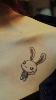 美女可爱兔子锁骨纹身