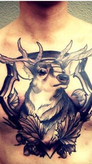 欧美男生胸部个性雄鹿纹身