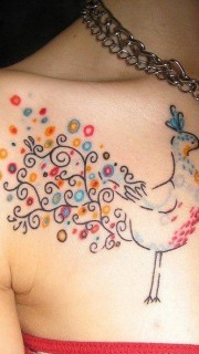 美女胸前性感鸽子血凤凰纹身