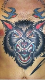 男生胸部个性霸气狼头纹身