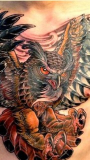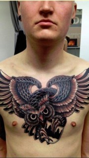 时尚男前胸霸气的猫头鹰纹身