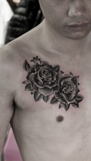 时尚男前胸漂亮的玫瑰花纹身