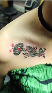 美女锁骨处好看的钥匙纹身