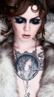 性感美女胸前希腊女神纹身
