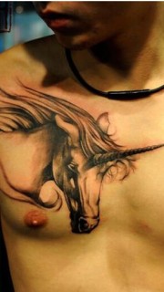 时尚男胸部帅气的独角兽纹身