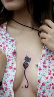 时尚女性胸部性感的猫咪纹身
