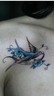 女孩子胸部漂亮的小燕子纹身