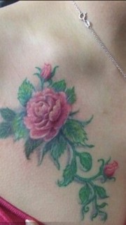 性感女胸部看的玫瑰花纹身