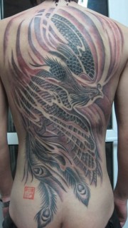 满背霸气的凤凰纹身