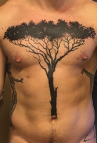 纹身胸部男 男生胸部黑色的大树纹身图片