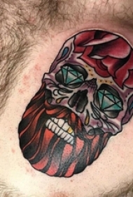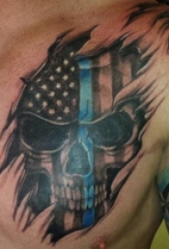 纹身骷髅头 男生胸部彩绘纹身骷髅纹身图片