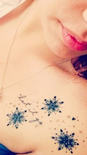 时尚美女胸前的雪花纹身