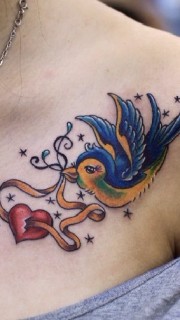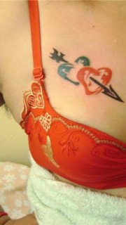 美女胸前性感的小鸟和心形纹身