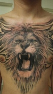胸口霸气狮子纹身作品