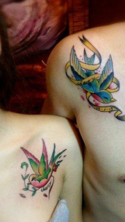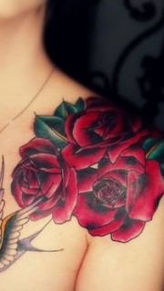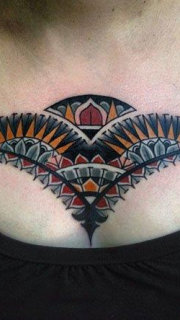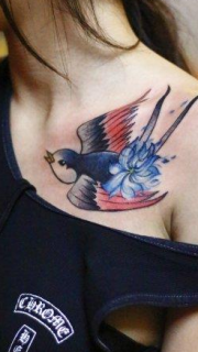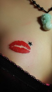 美女胸部头戴蝴蝶结的骷髅头纹身图