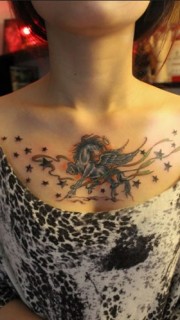 在胸部肆意奔腾的天马纹身图案
