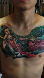 男士胸部大慈大悲的观音娘娘纹身图案