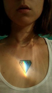 女生颈部彩色钻石个性纹身
