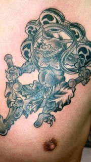 男性胸部风神刺青图片