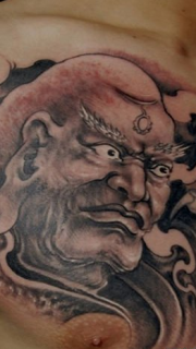 男性胸前怒目金刚纹身