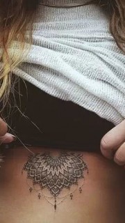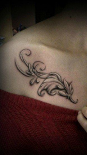 美女胸下好看的梵花纹身图案