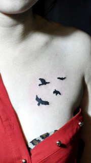 女人胸部唯美小巧的图腾小鸟刺青图片