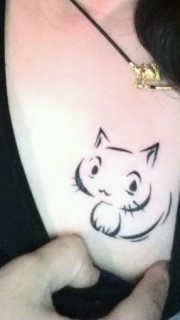 女性胸部可爱简单的小猫纹身