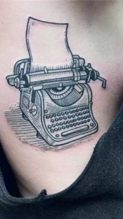 美女胸侧旧式打字机纹身图案