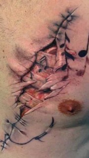 男性胸部不一样的撕皮纹身