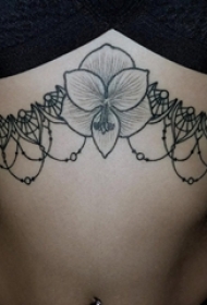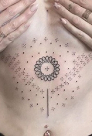 女生胸部黑灰点刺几何简单线条创意装饰花朵纹身图片