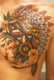 男生胸部彩绘渐变几何简单线条花朵和人物纹身图片