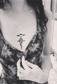 女生胸部黑色简单抽象线条创意符号纹身图片