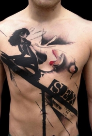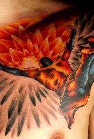 胸部插画风格彩色飞翔的伊卡洛纹身图案