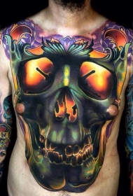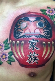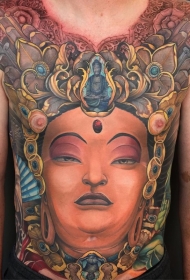 胸部和腹部彩色华丽的如来佛祖神像纹身图案