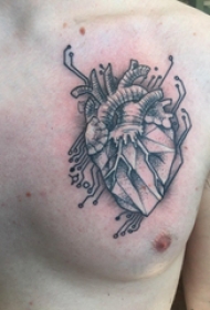 心脏位置纹身 男生胸部黑色的心脏纹身图片