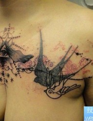 女人胸部之特别风格性感鸟纹身图案
