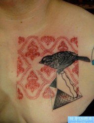 胸部之特别风格荆刺鸟纹身图案