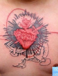胸部之特别风格心脏和平鸽纹身图案